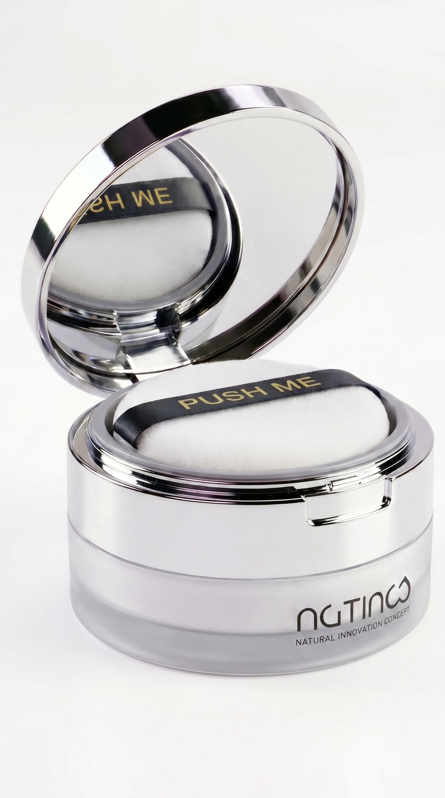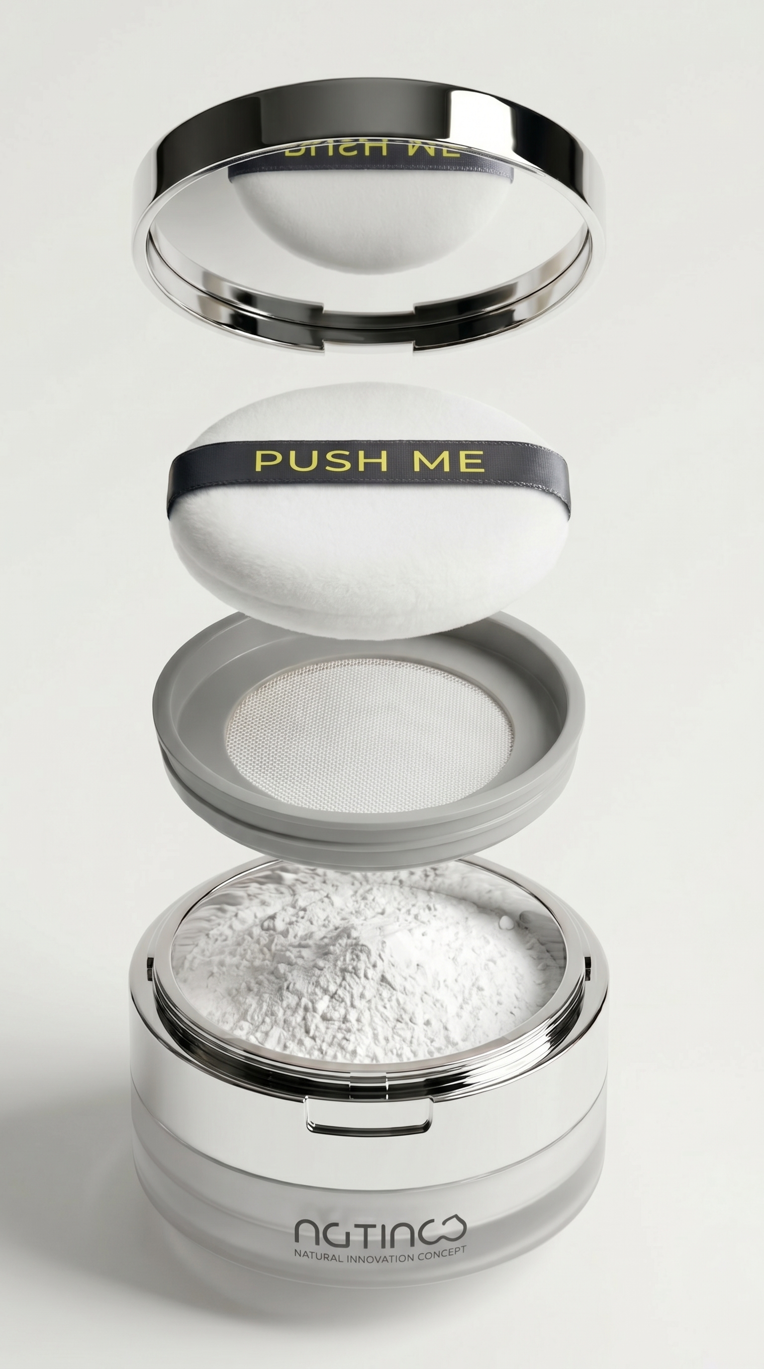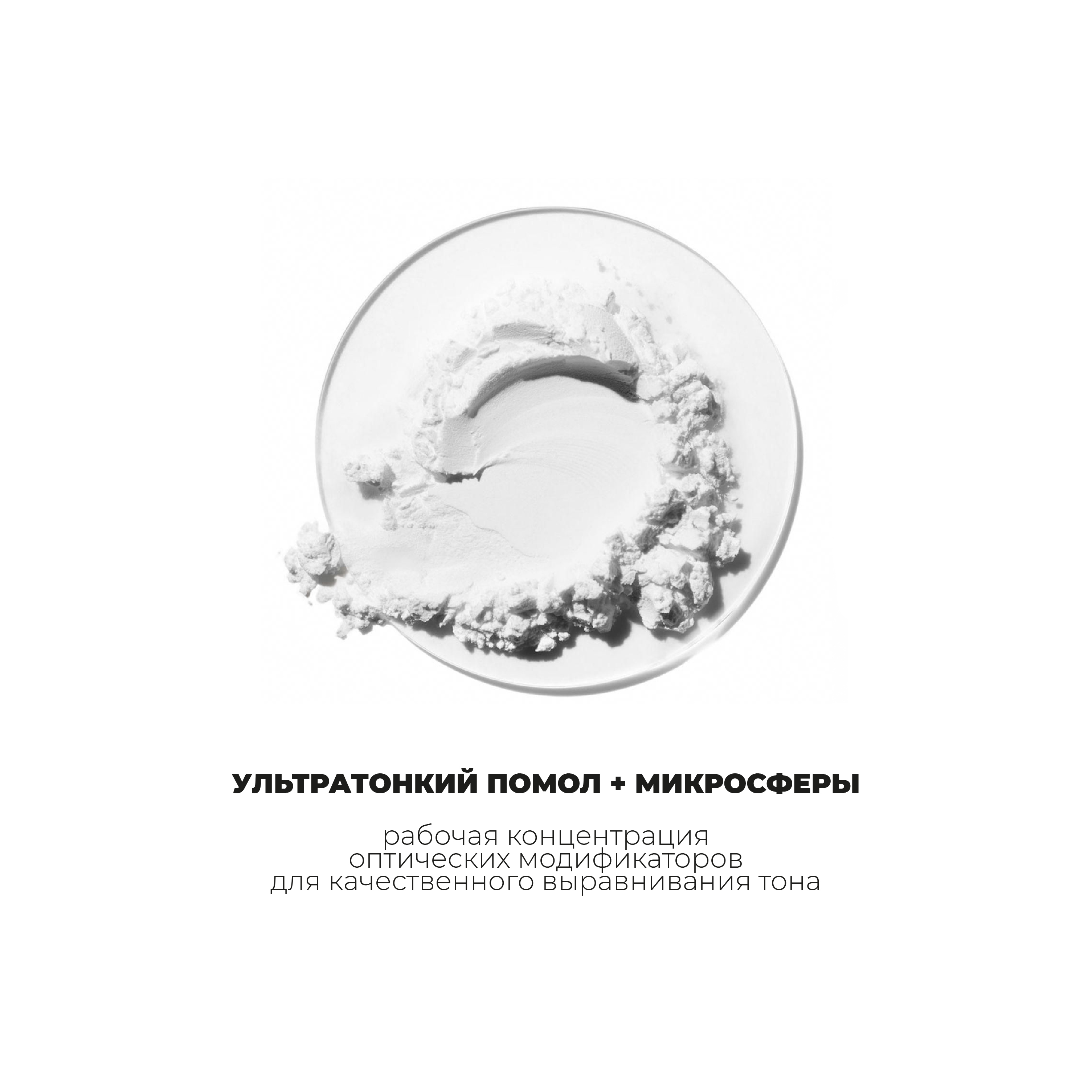 INCI: Mica (мика), Magnesium Stearate (стеарат магния), Zinc oxide (оксид цинка), Titanium dioxide (диоксид титана), Silica (микросферы кремния), Boron Nitride (нитрид бора), Cetyl palmitate (цетил пальмитат), Allantoin (аллантоин), Pearl Powder (жемчужная пудра), Silk powder (пудра шелка), D-alpha tocopheryl acetate (витамин Е натурального происхождения).