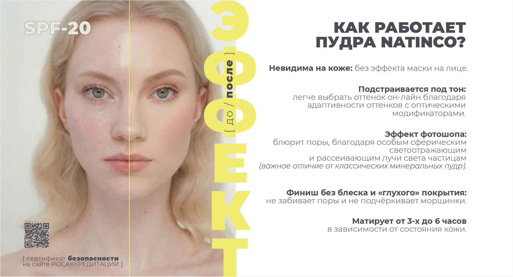 Подходит для всех типов кожи, включая: жирную, проблемную, комбинированную, сухую, зрелую. Удерживает влагу, за счет чего достигается себорегулирующий эффект (она не просто абсорбирует кожный жир, но и снижает его выработку. Скрывает несовершенства, делает лицо идеальным не только во время макияжа, но и без него.