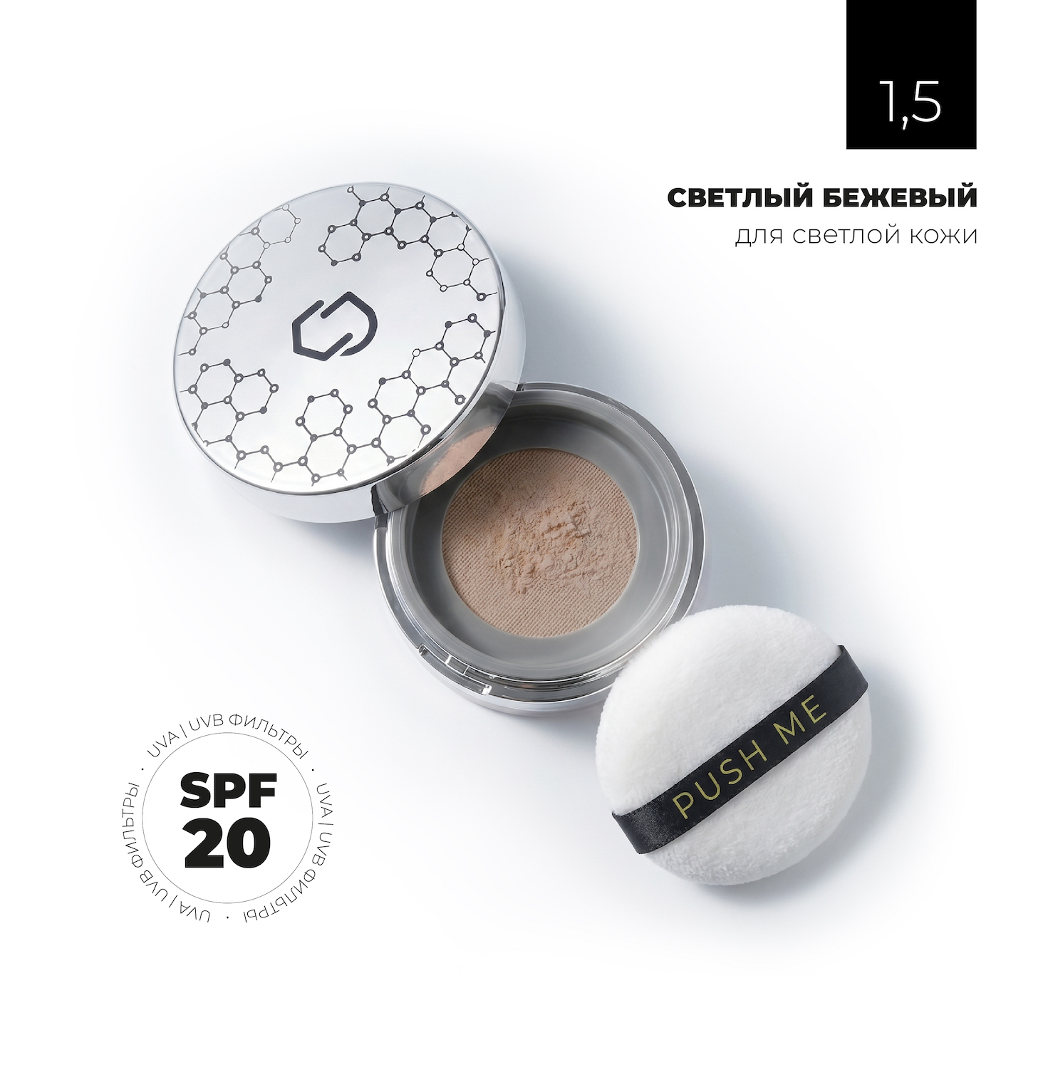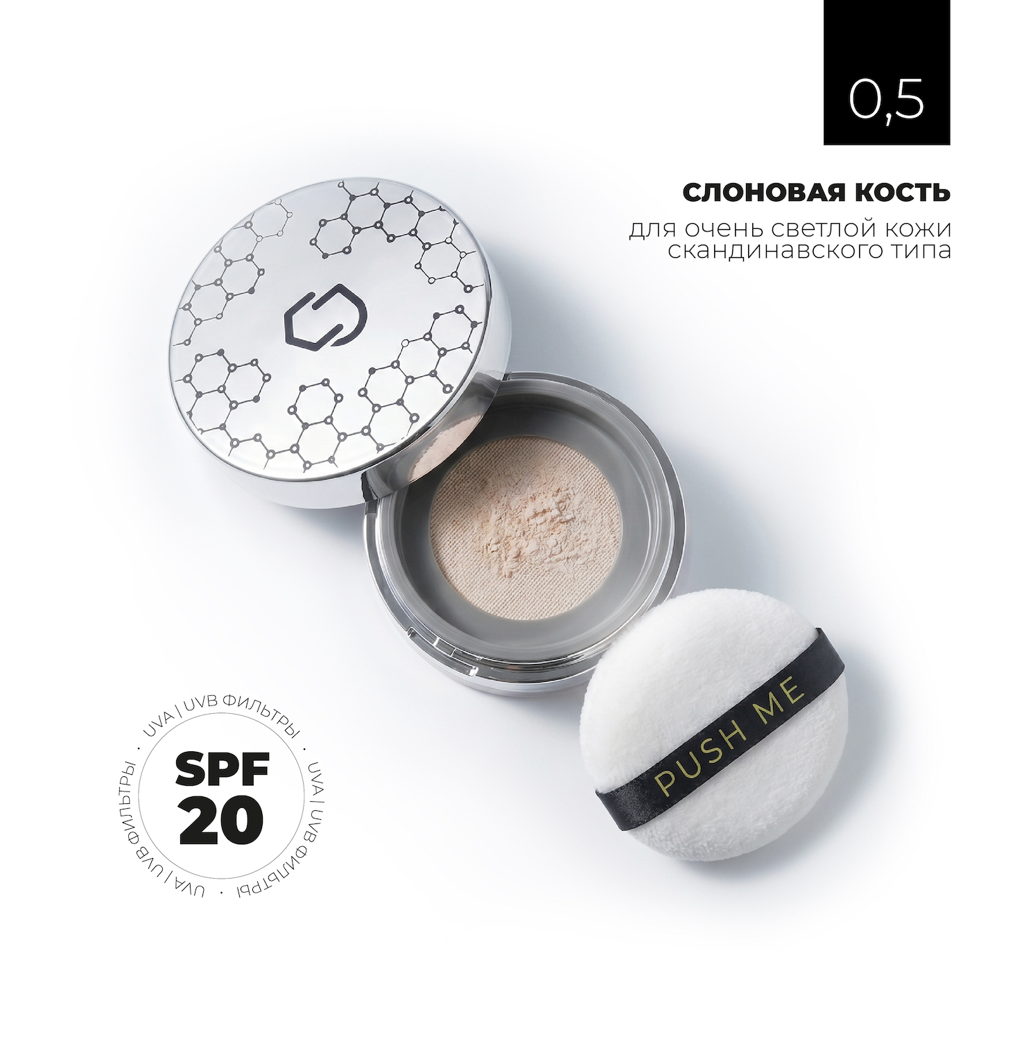 Рассыпчатая минеральная пудра для лица против жирности и высыпаний с ухаживающим действием для легкого идеального макияжа с эффектом фотошопа (благодаря строению светоотражающие частиц).